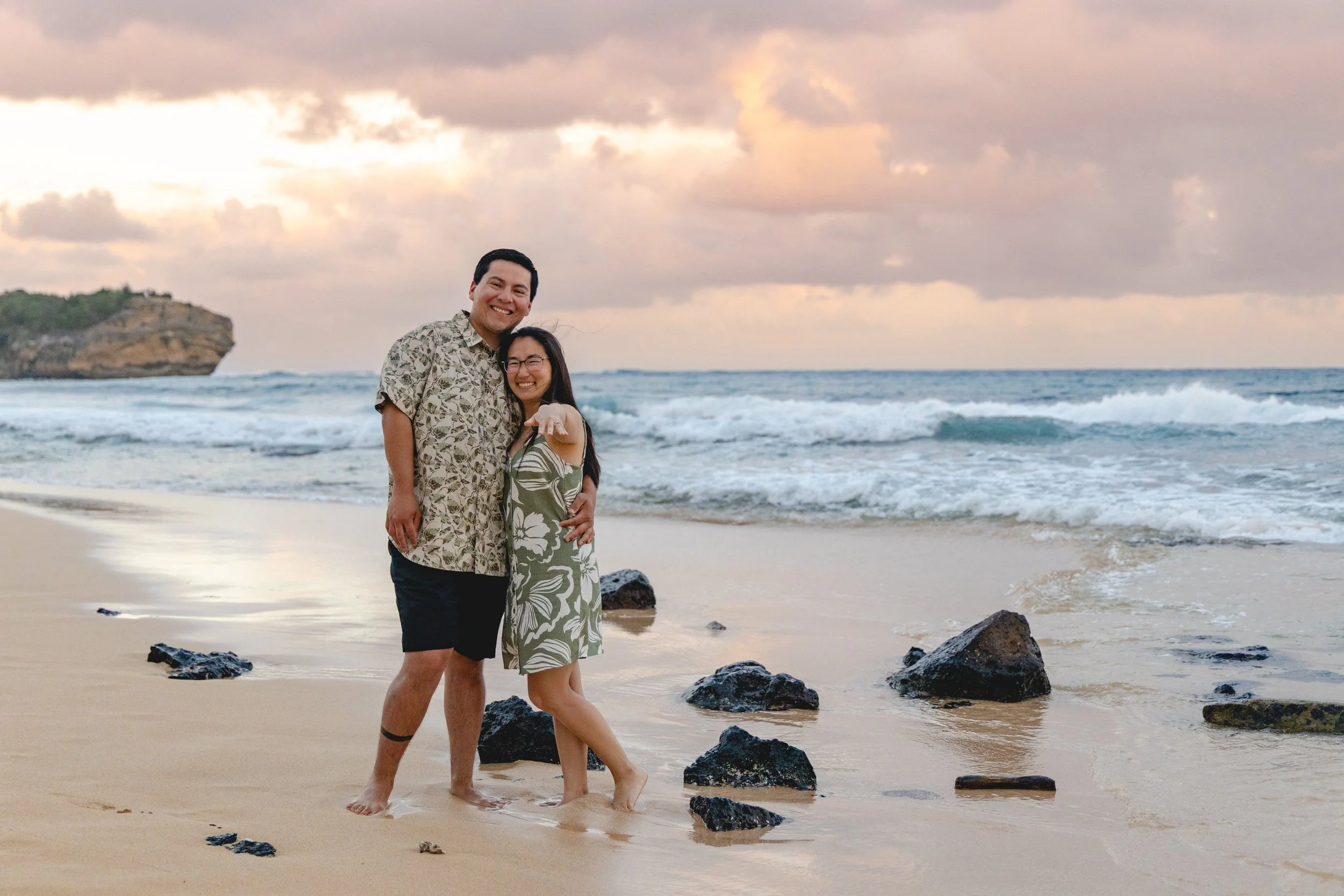 This photo session was extra special for me! My best friend Courtney got engaged! Courtney and Cristian came to Shipwreck Beach on Kauai's south shore just after getting engaged, and the sky that evening had clearly heard the news.