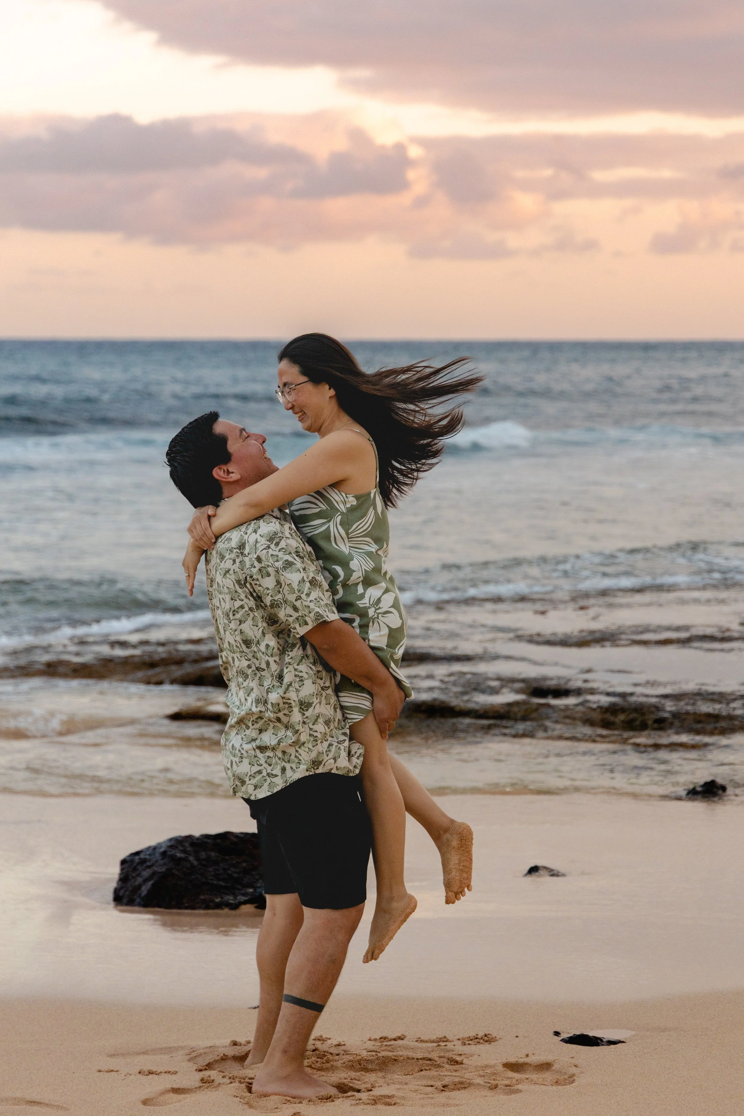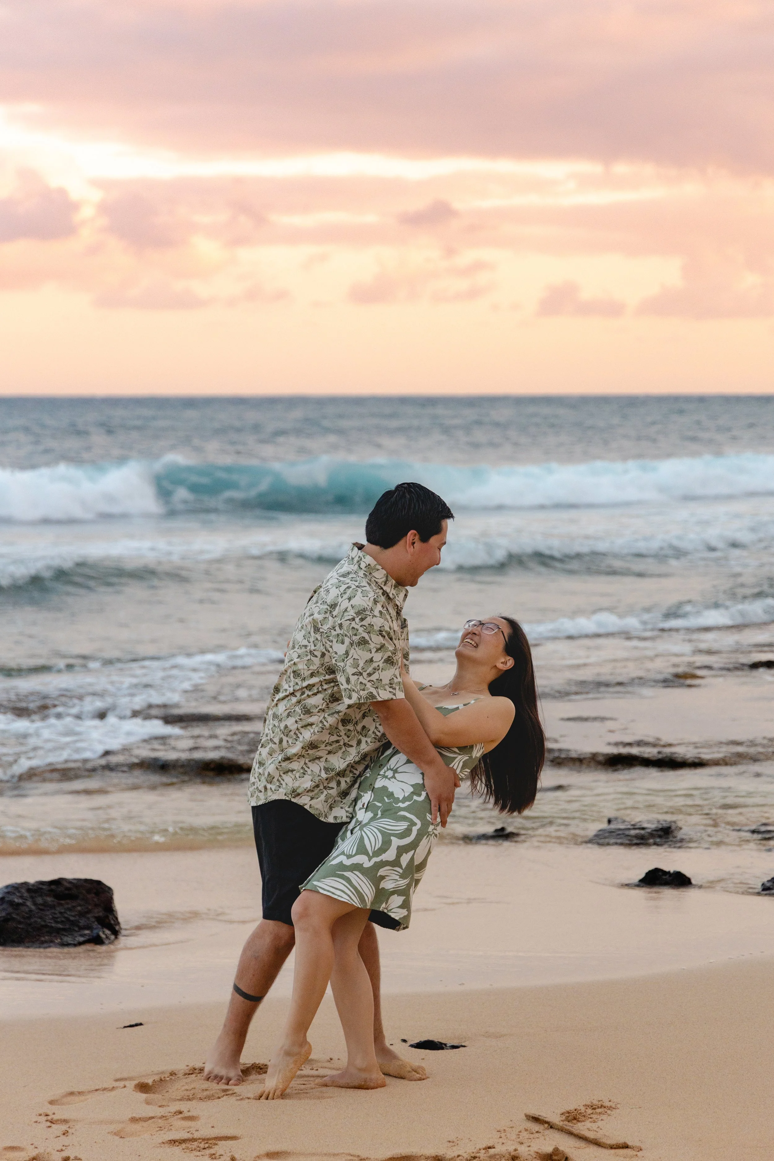 The clouds went peach and we got some beautiful dramatic waves crashing against the black lava rocks. And these two, moved through it all like they'd done this a hundred times, even though I happen to know it was their very first professional photo session ever!